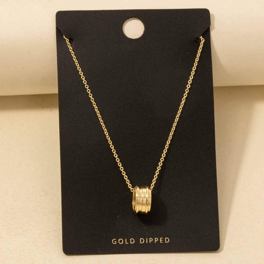 Add some edge to your look, this necklace adds a distinctive gold dipped dainty ring pendant design. A chic and sophisticated necklace that's perfect for dressing up or down.