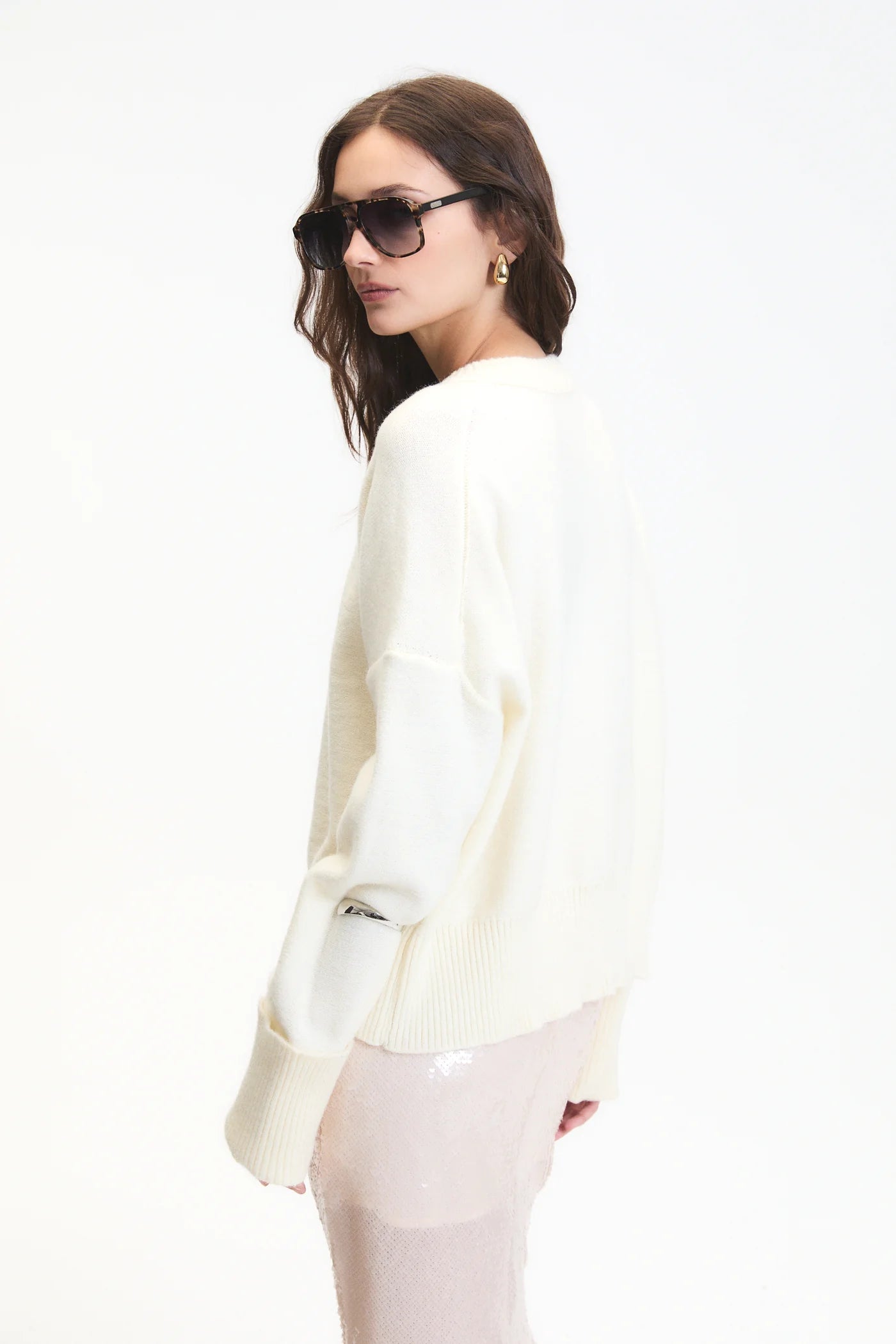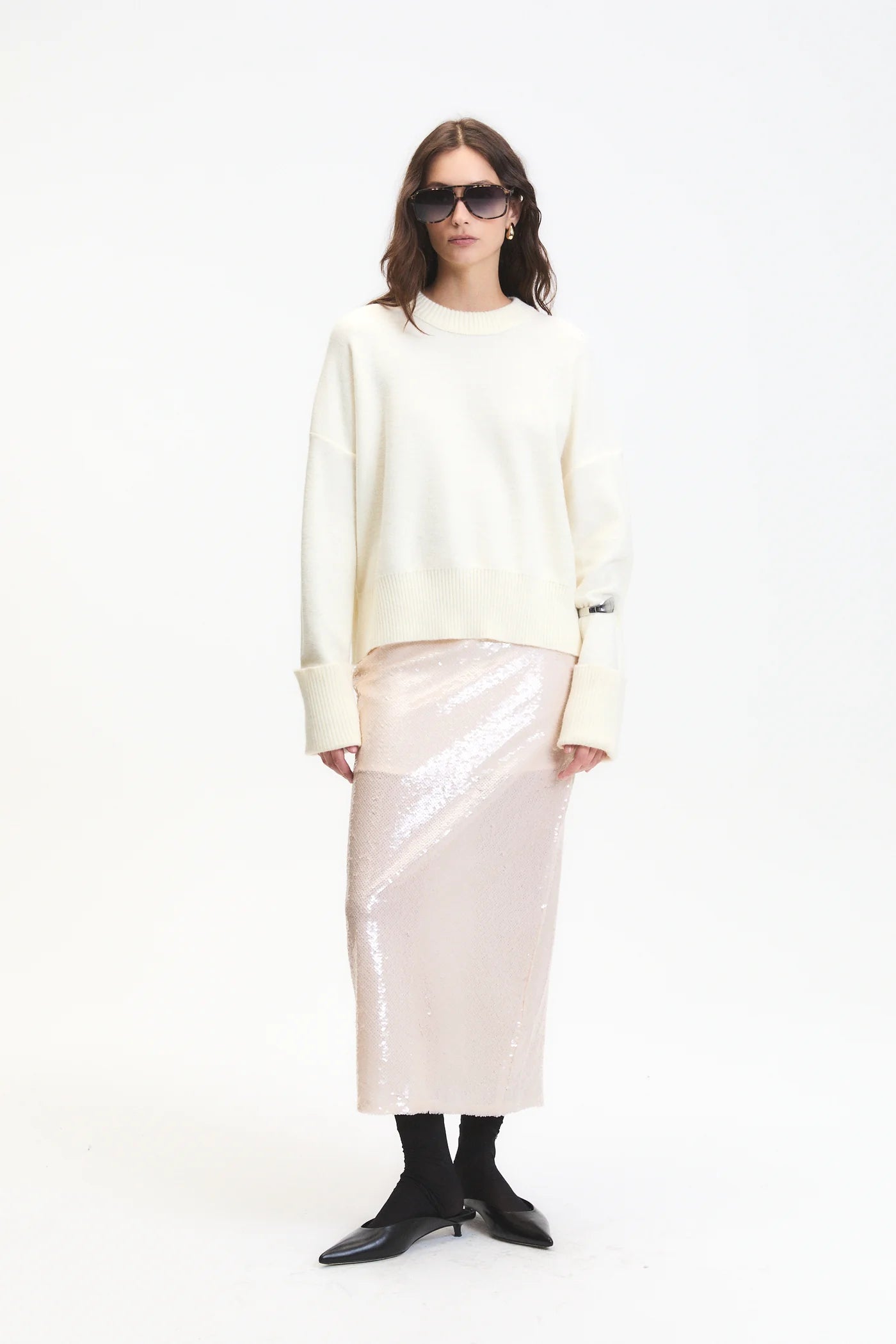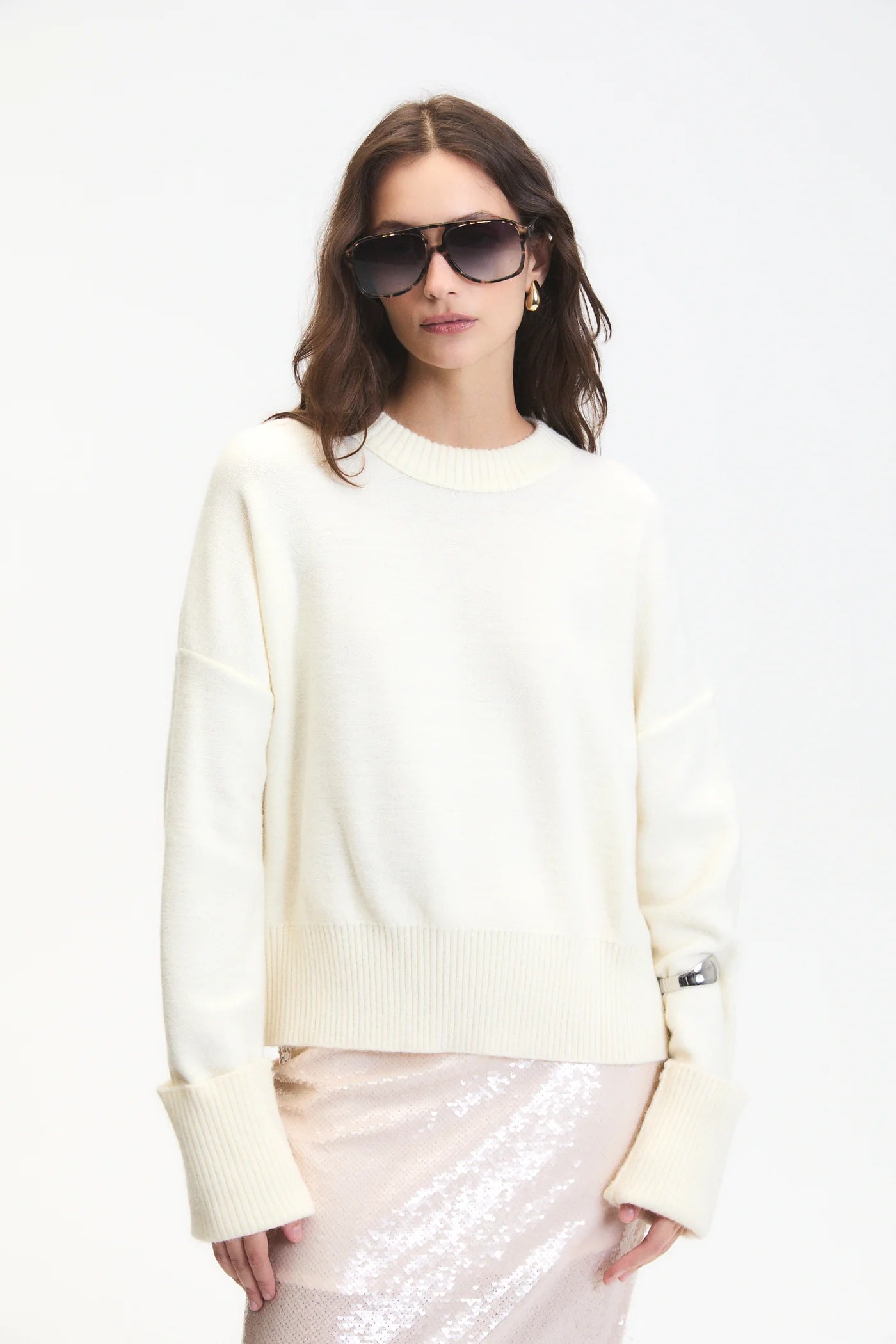 Sweater with round neckline and long sleeves. Rolled up cuffs on sleeves