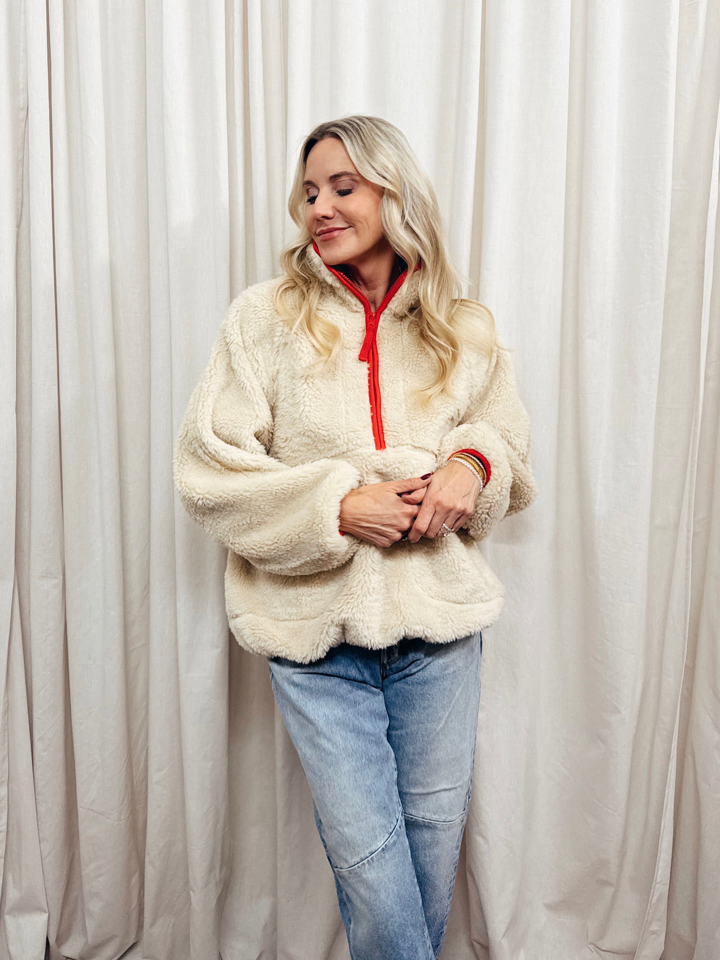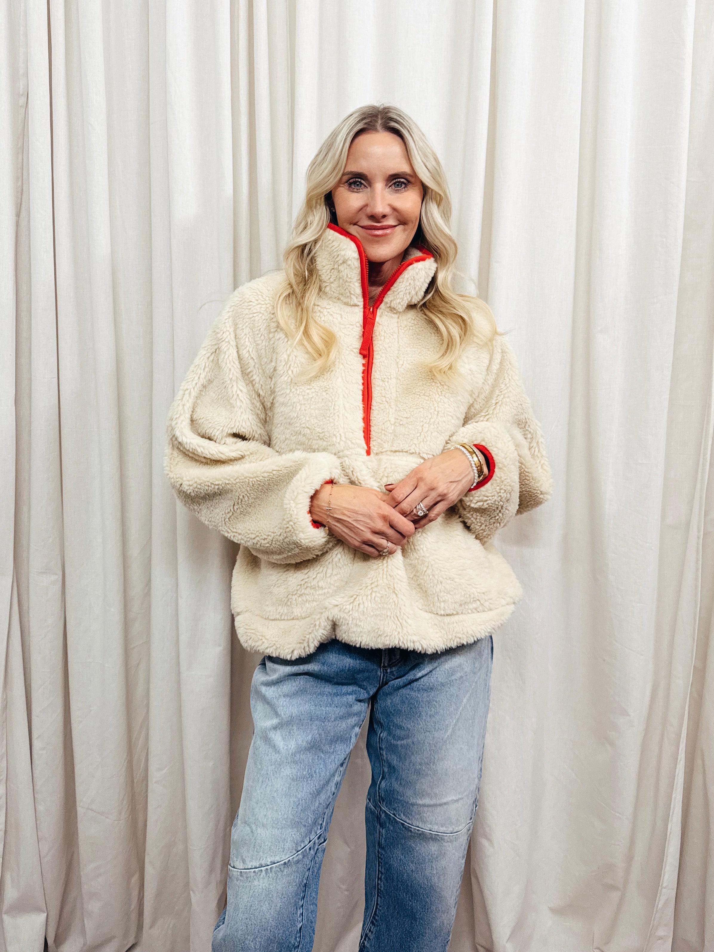 Temperatures are dropping — cue our ultra warm sherpa fleece jacket with large front pockets and a half zip design. Throw it on during hikes, dinner, long plane rides—anytime, anywhere