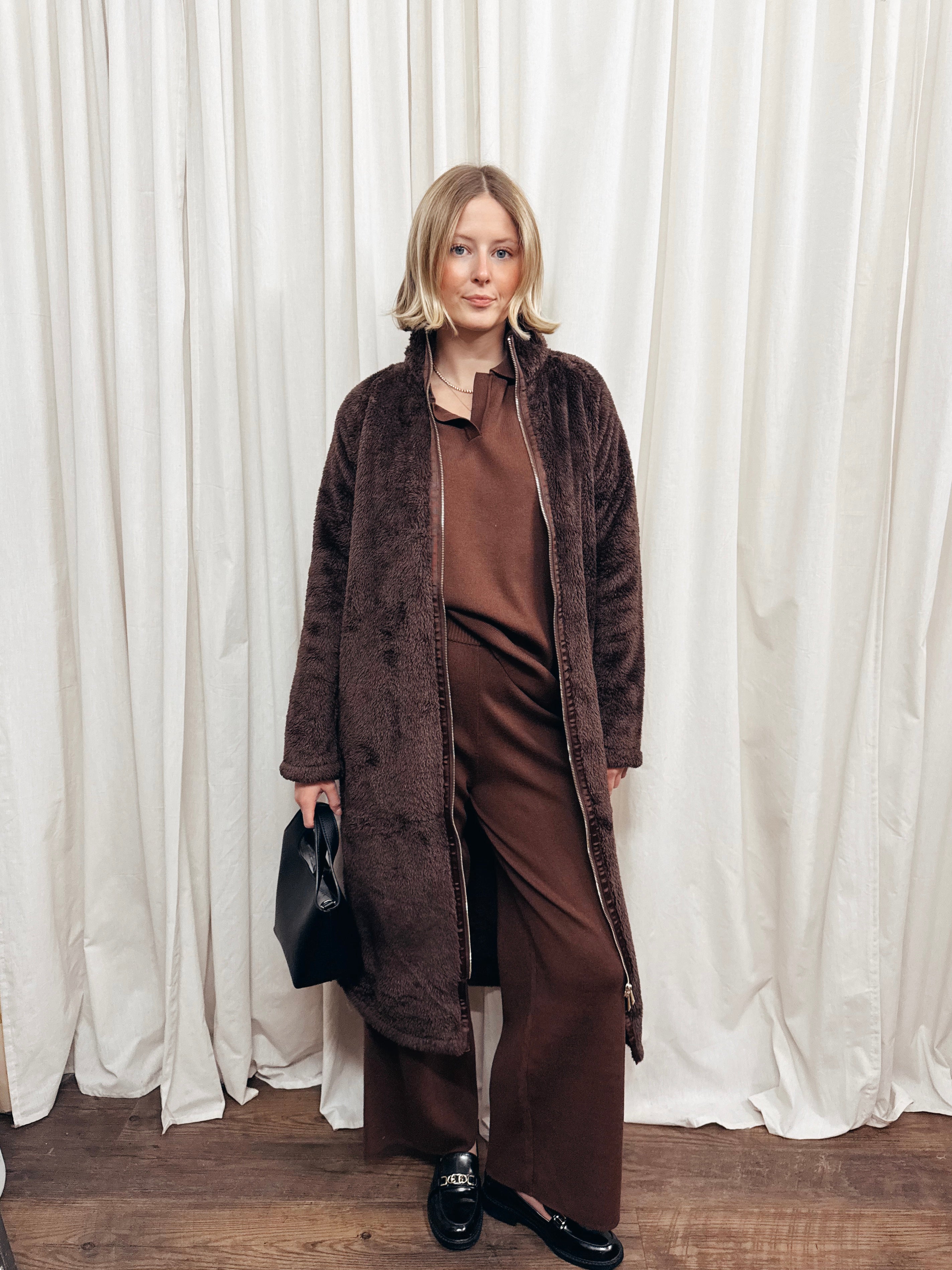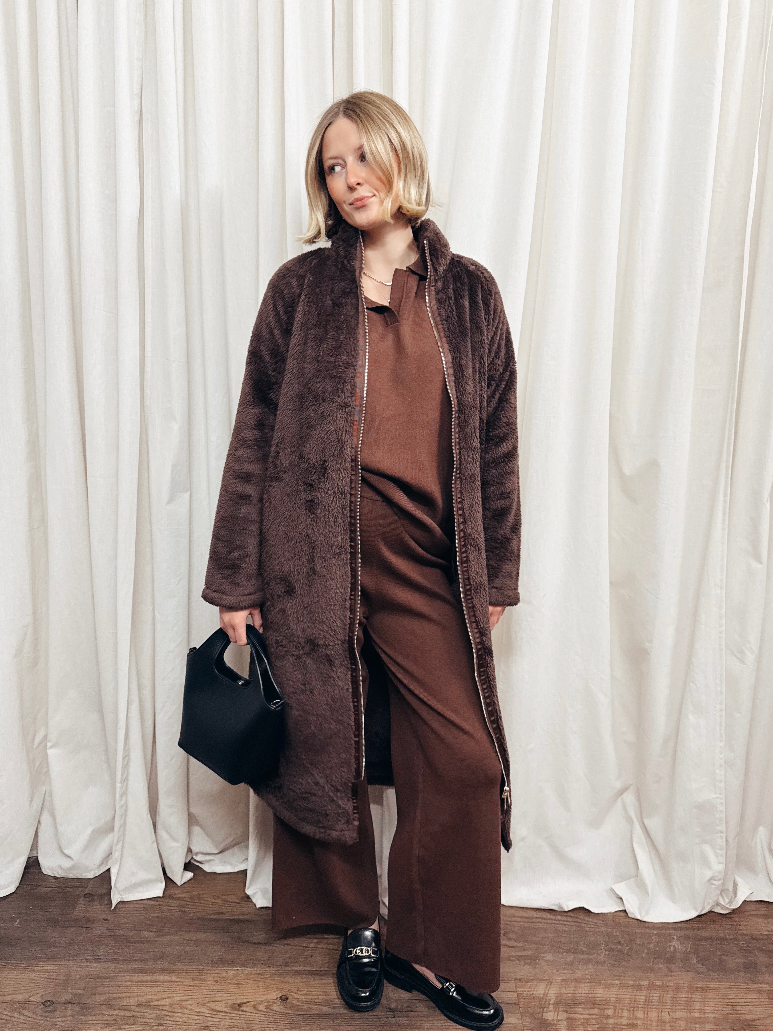 Cozy meets polished in the DreamPlush Zip Robe—a versatile essential made from our ultra-soft, velvety DreamPlush fabric. Designed with a full-length front zip, shawl collar, and relaxed silhouette, it wraps you in warmth whether you're lounging at home or layering up on the go. Elevated enough to wear as an overcoat, this robe brings luxurious comfort to both indoor and outdoor moments. A standout piece for gifting, resort edits, and cold-weather collections.