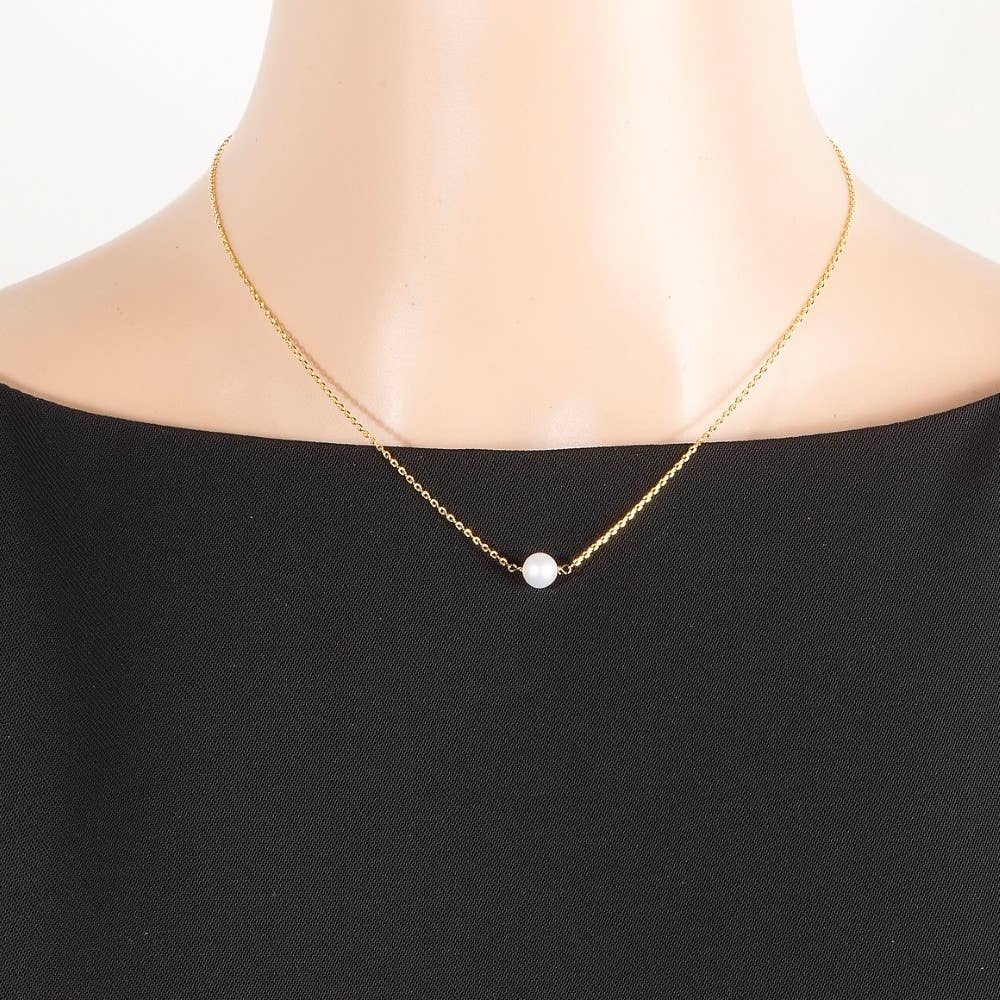 This necklace is made with 50% Pearl and 50% Brass.