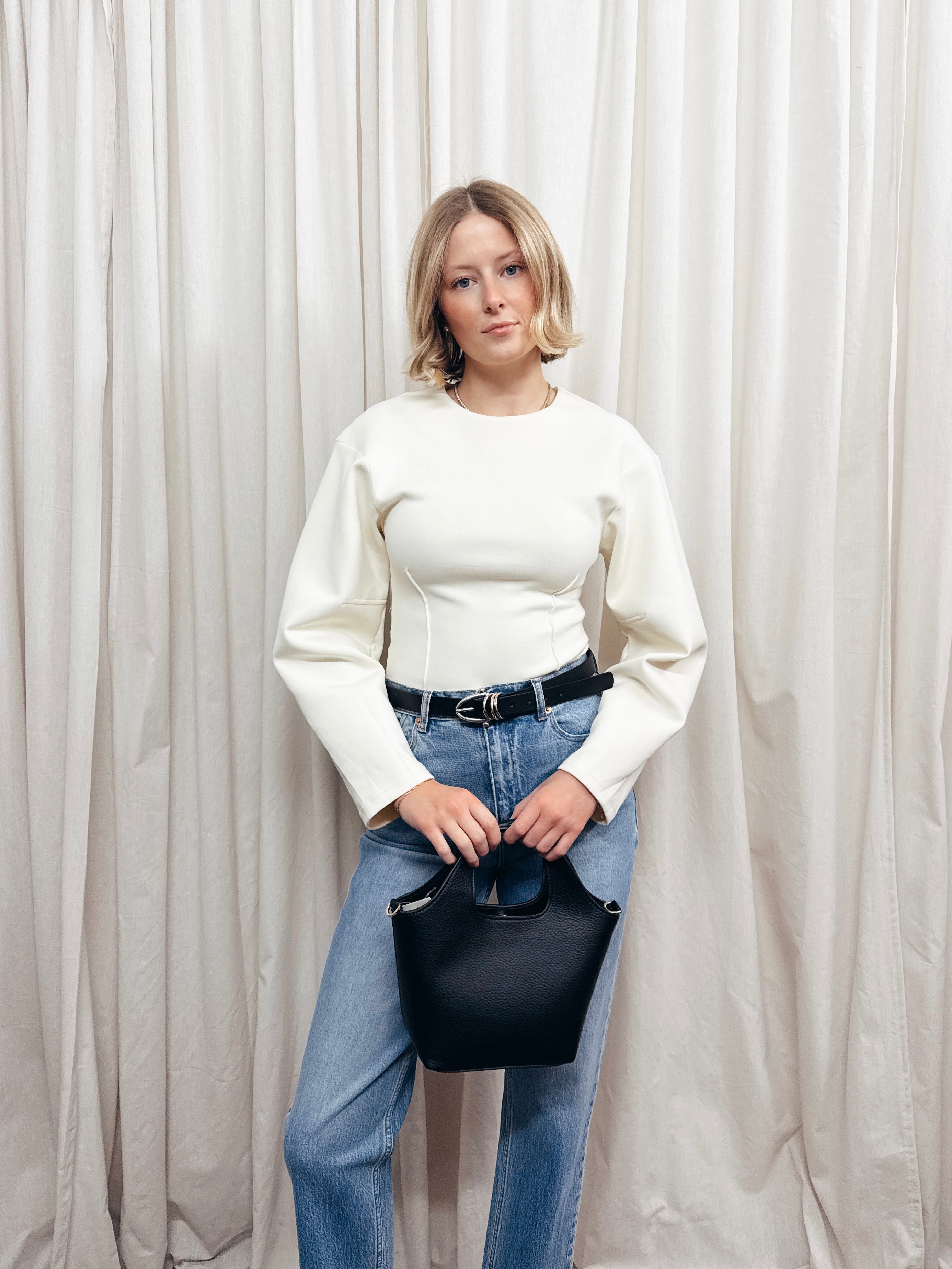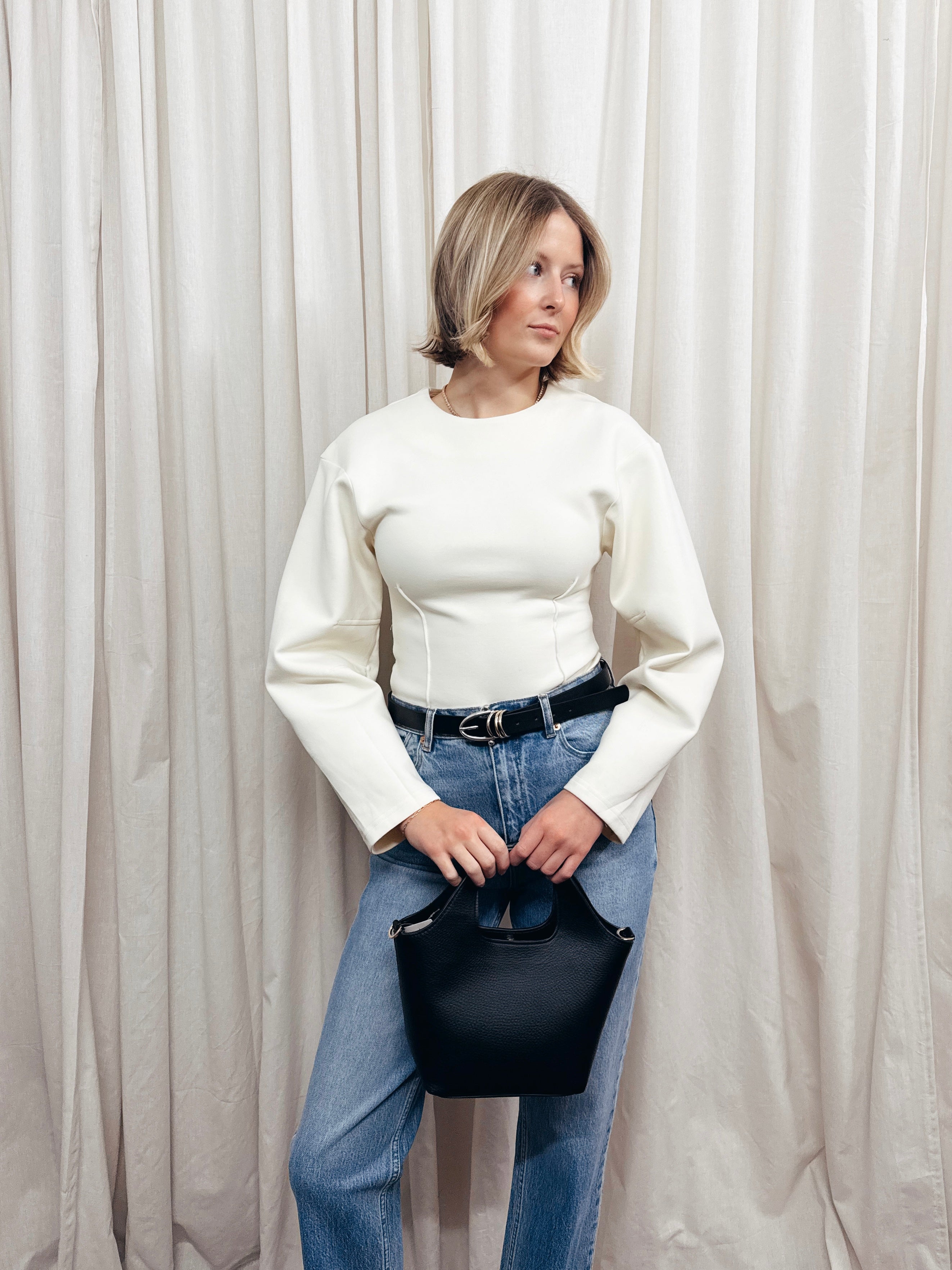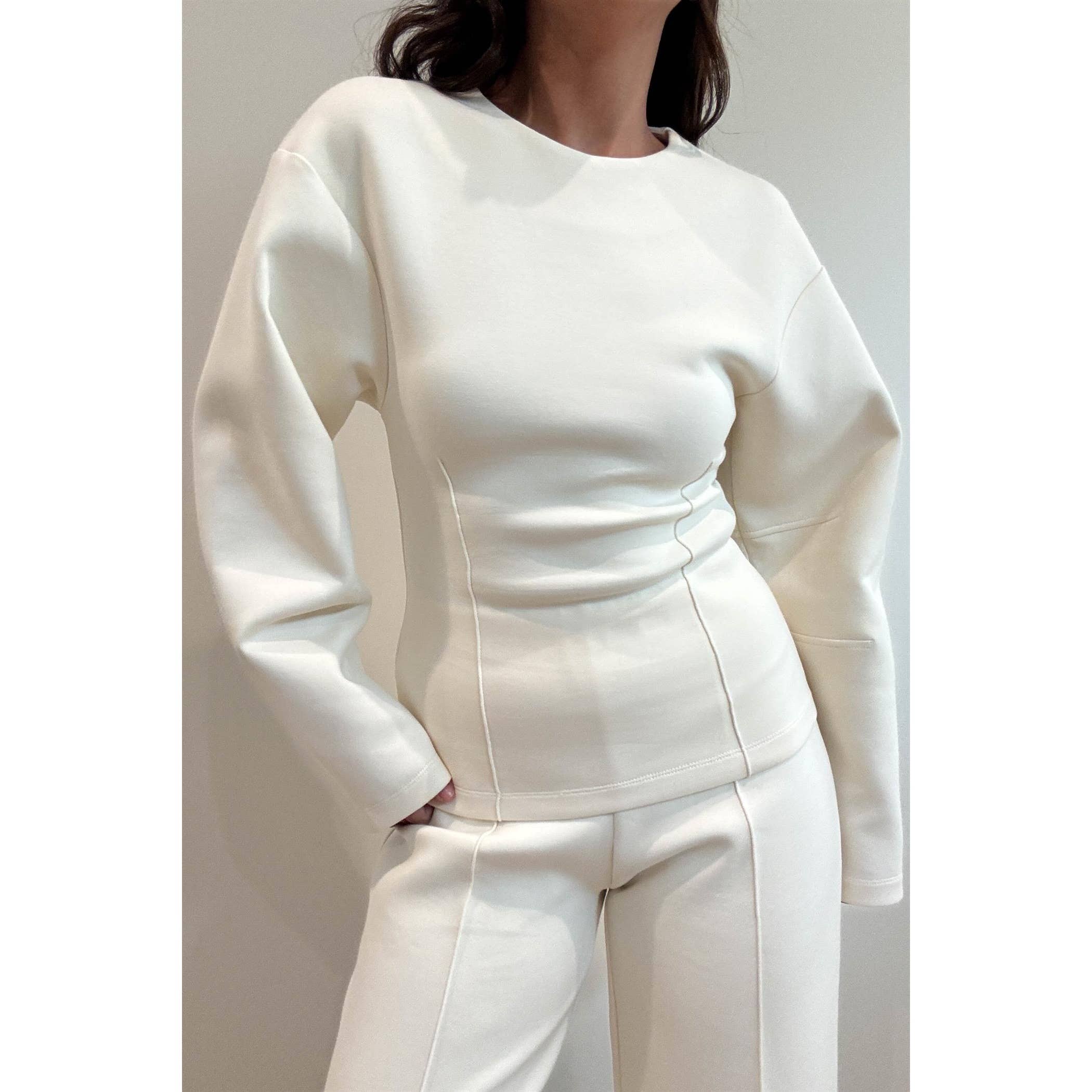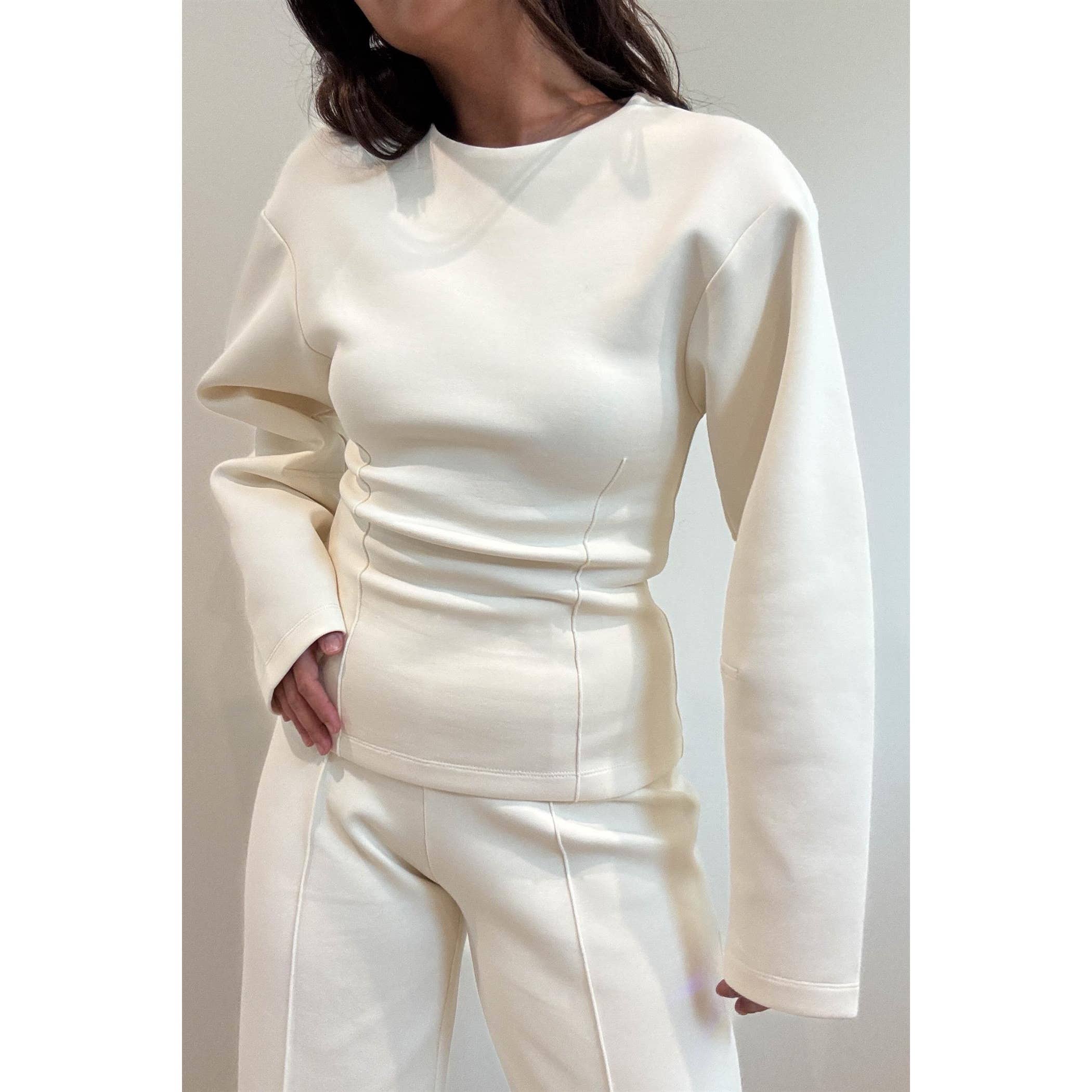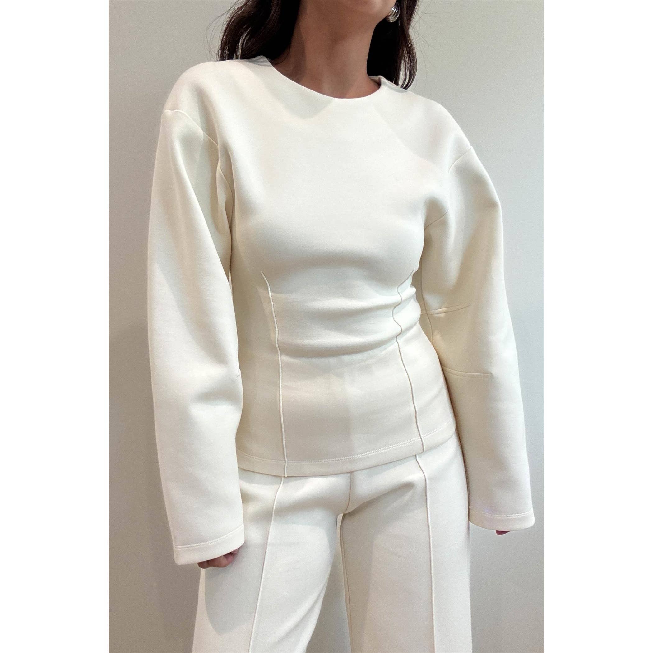 The Statement Sleeve Fitted Waist Cotton Knit Top
