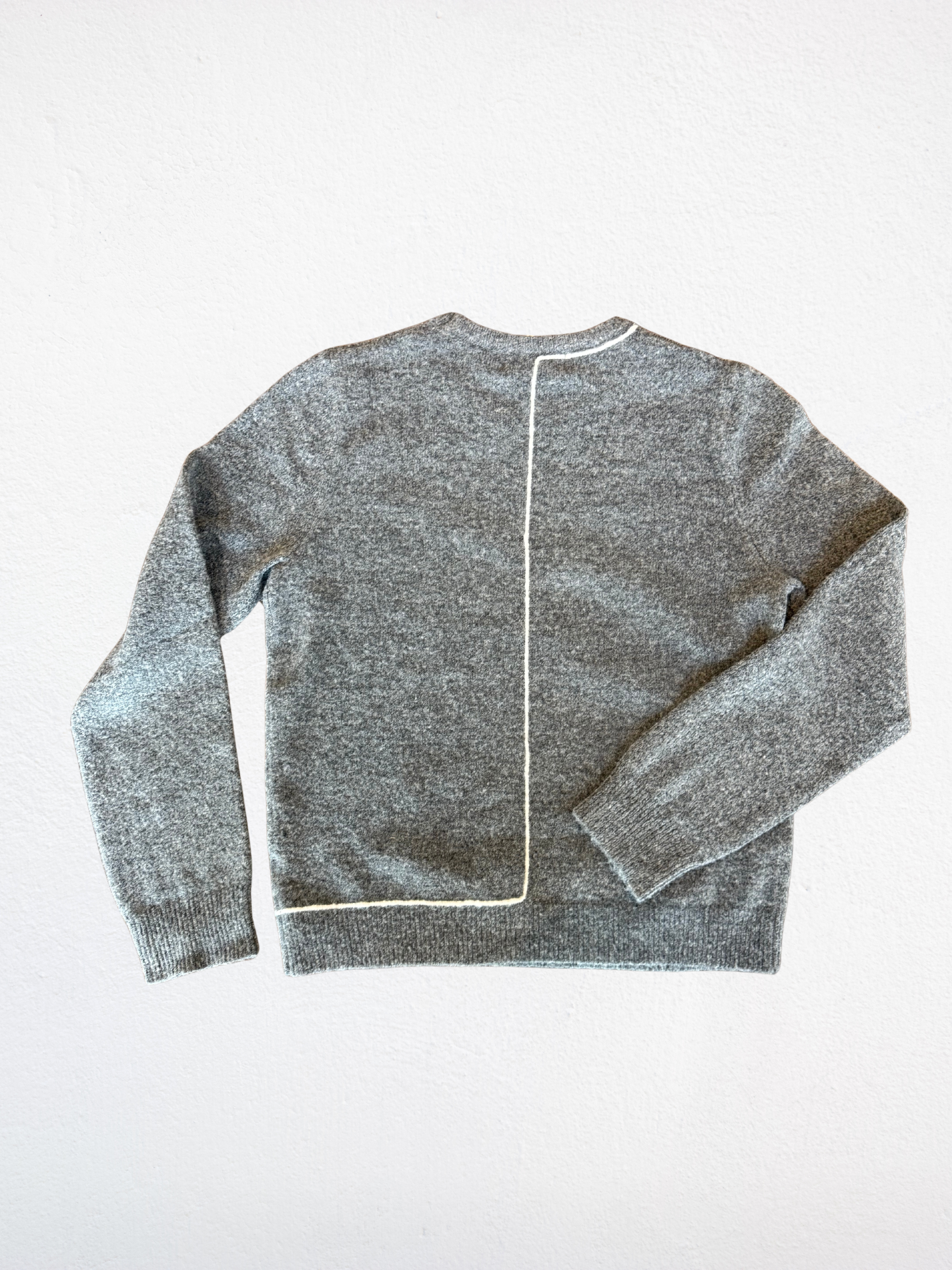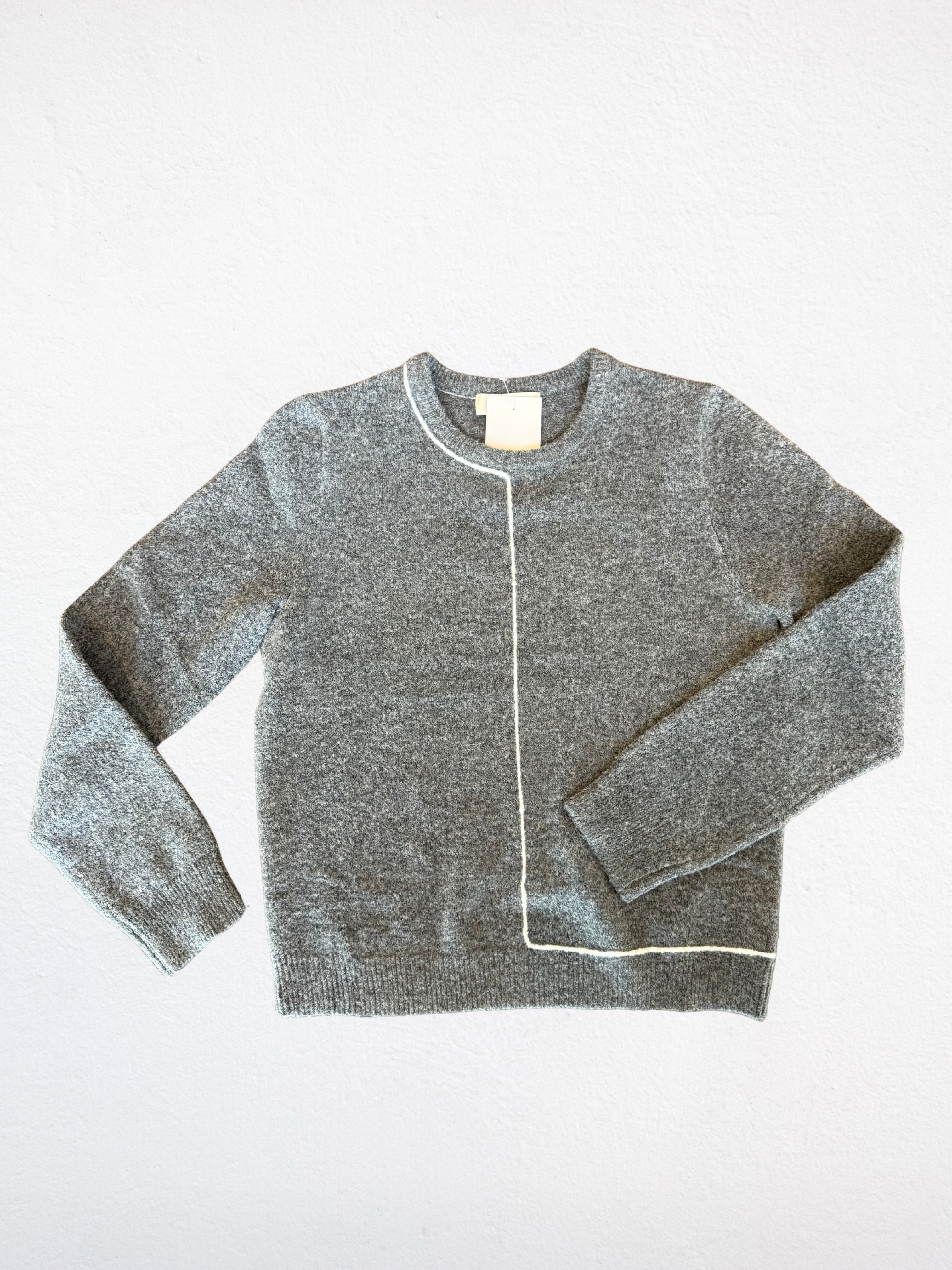 Elevate your wardrobe with this sophisticated grey pullover sweater, featuring elegant white line detailing that adds subtle contrast. Crafted from a soft, comfortable fabric, it offers both style and ease, making it perfect for refined casual wear or layering on cooler days.