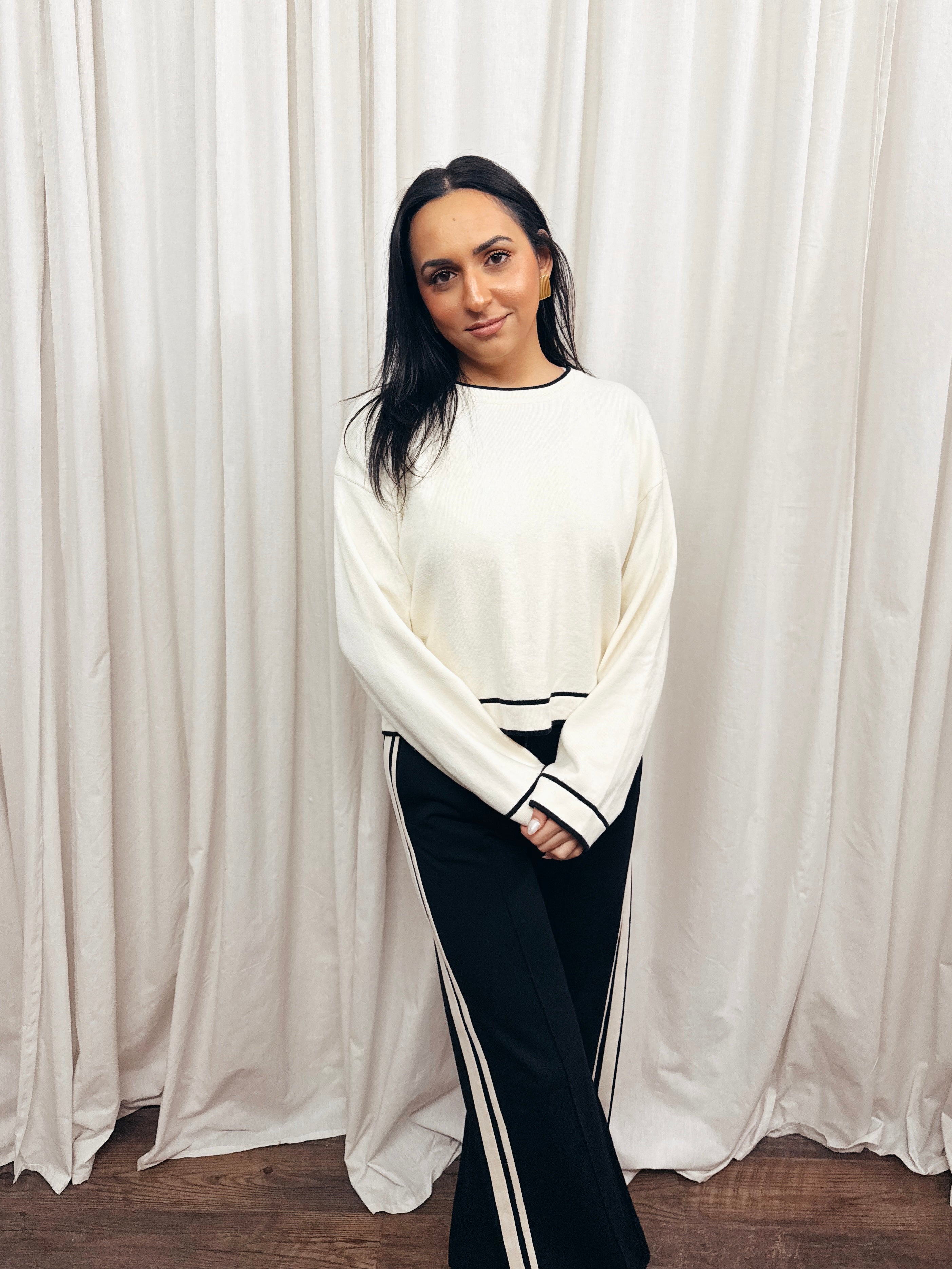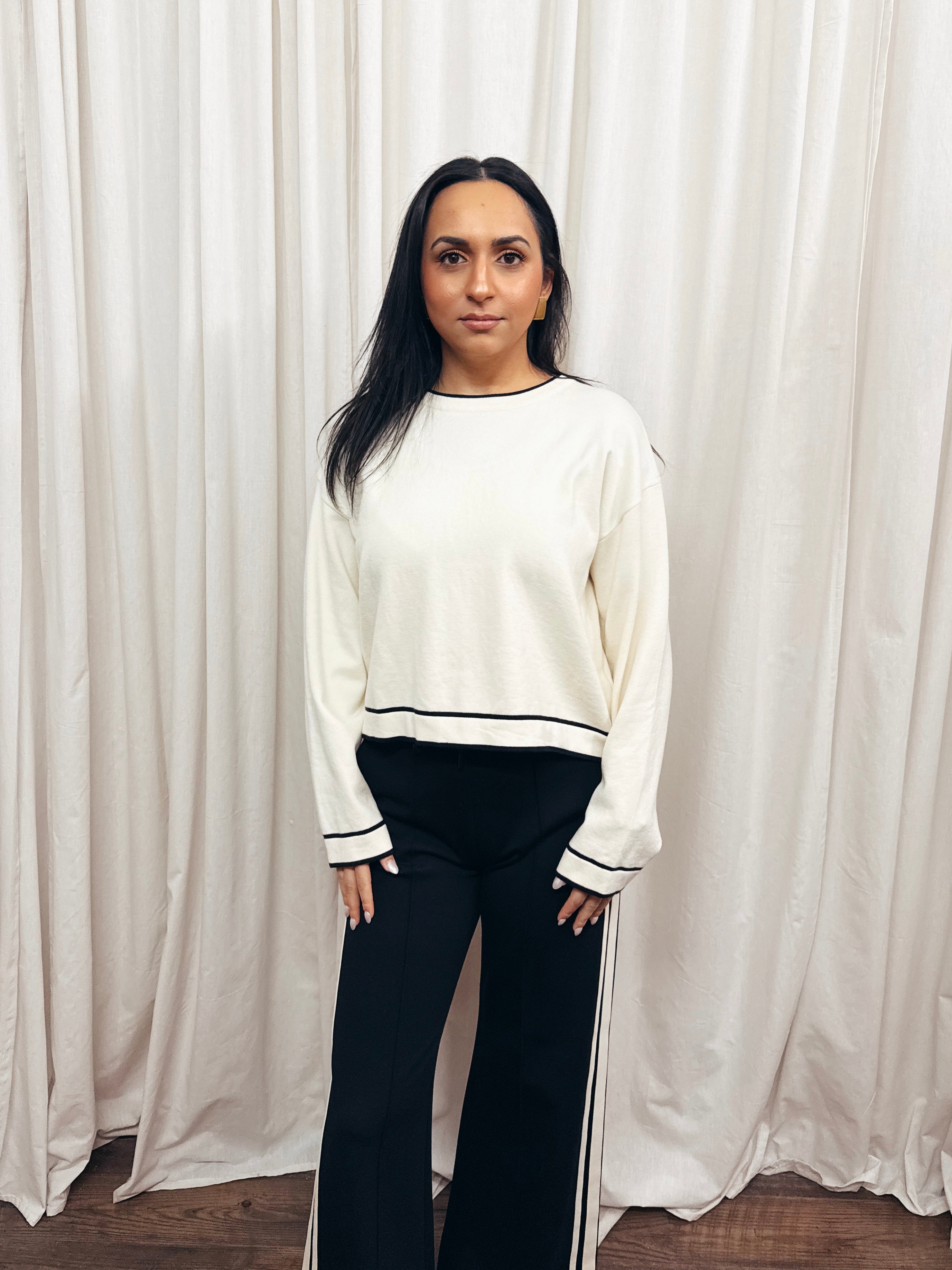 Refined detailing defines this crewneck sweater, where subtle contrast piping adds visual sophistication to a timeless silhouette. The soft knit construction provides comfortable warmth and ease, while the understated trim elevates it beyond basic essentials. Versatile enough to layer under jackets or wear as a standalone piece, it pairs effortlessly with any bottom in your wardrobe. An enduring investment that brings quiet elegance and refined simplicity to your everyday styling.