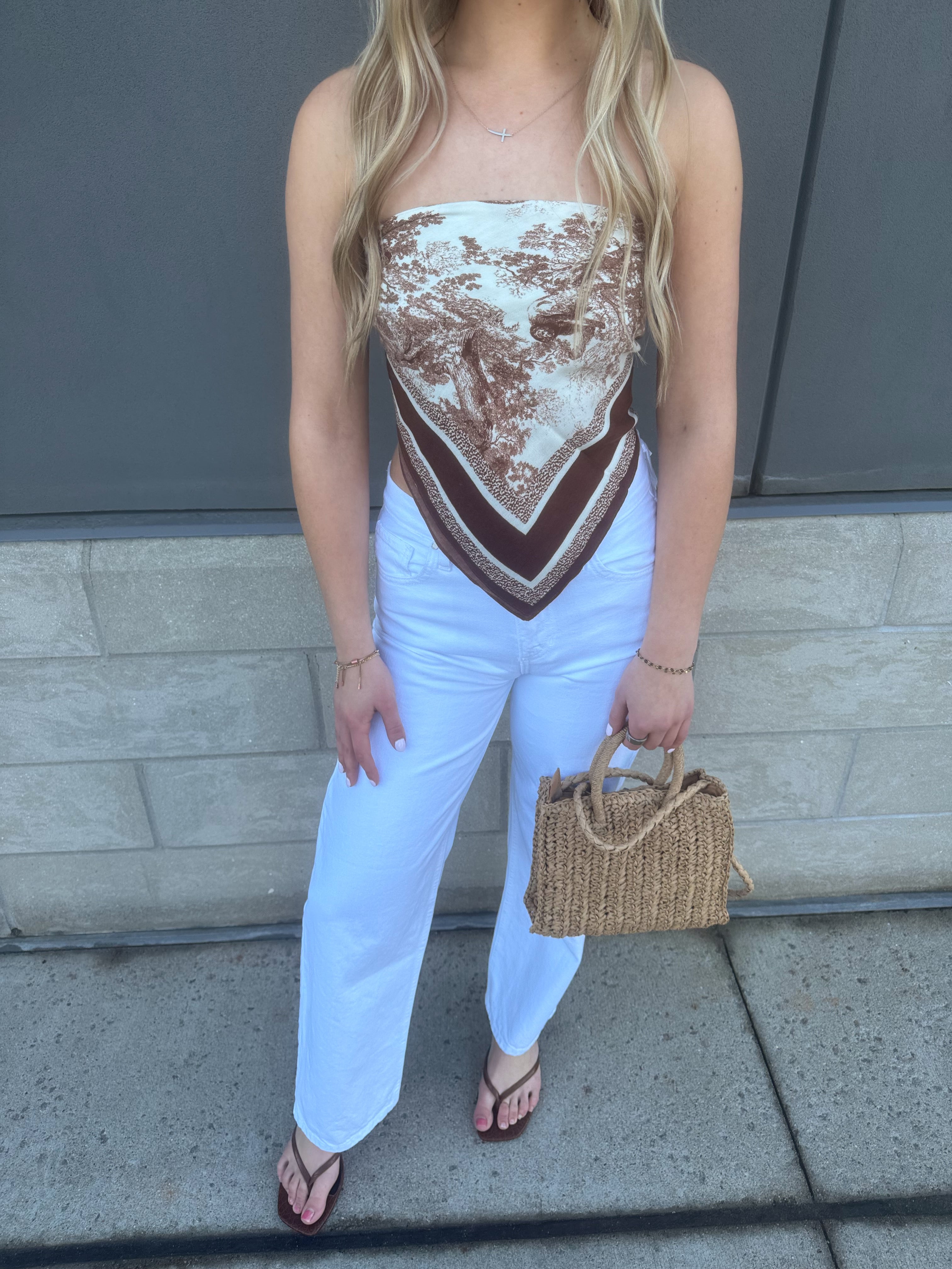 Elevate your wardrobe with this refined toile print scarf top in rich burgundy. The intricate pattern brings timeless elegance to any ensemble, while the scarf neckline adds a graceful, feminine touch. Perfect for layering or wearing solo, this piece transitions seamlessly from day to evening. Crafted with attention to detail, it's an investment in versatile, sophisticated style that complements both casual and polished looks.