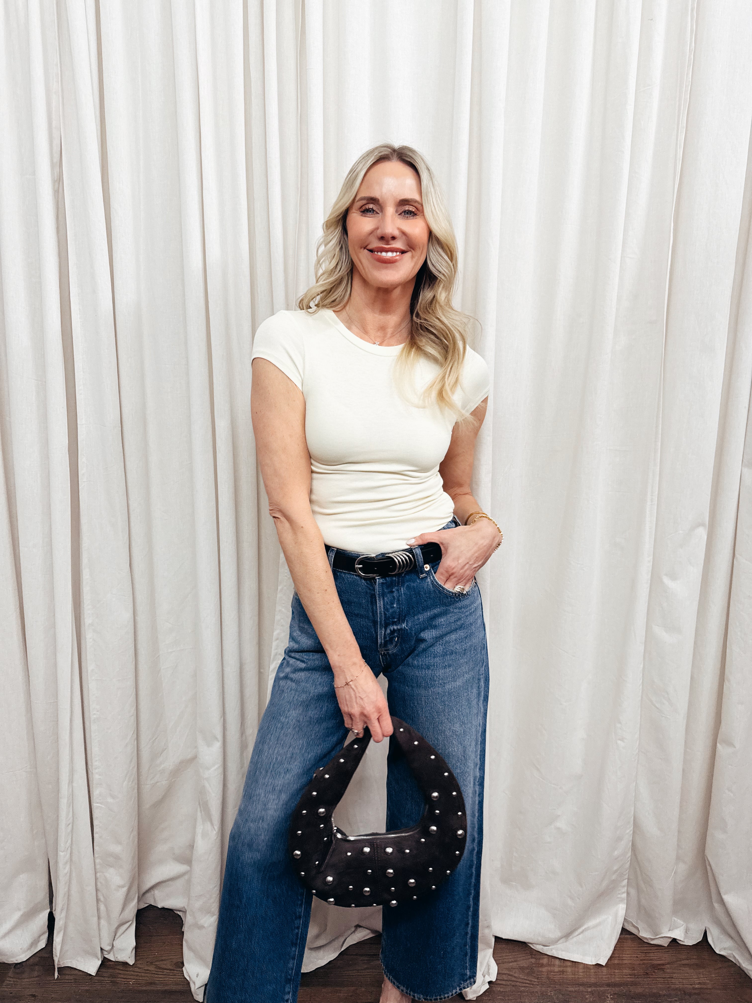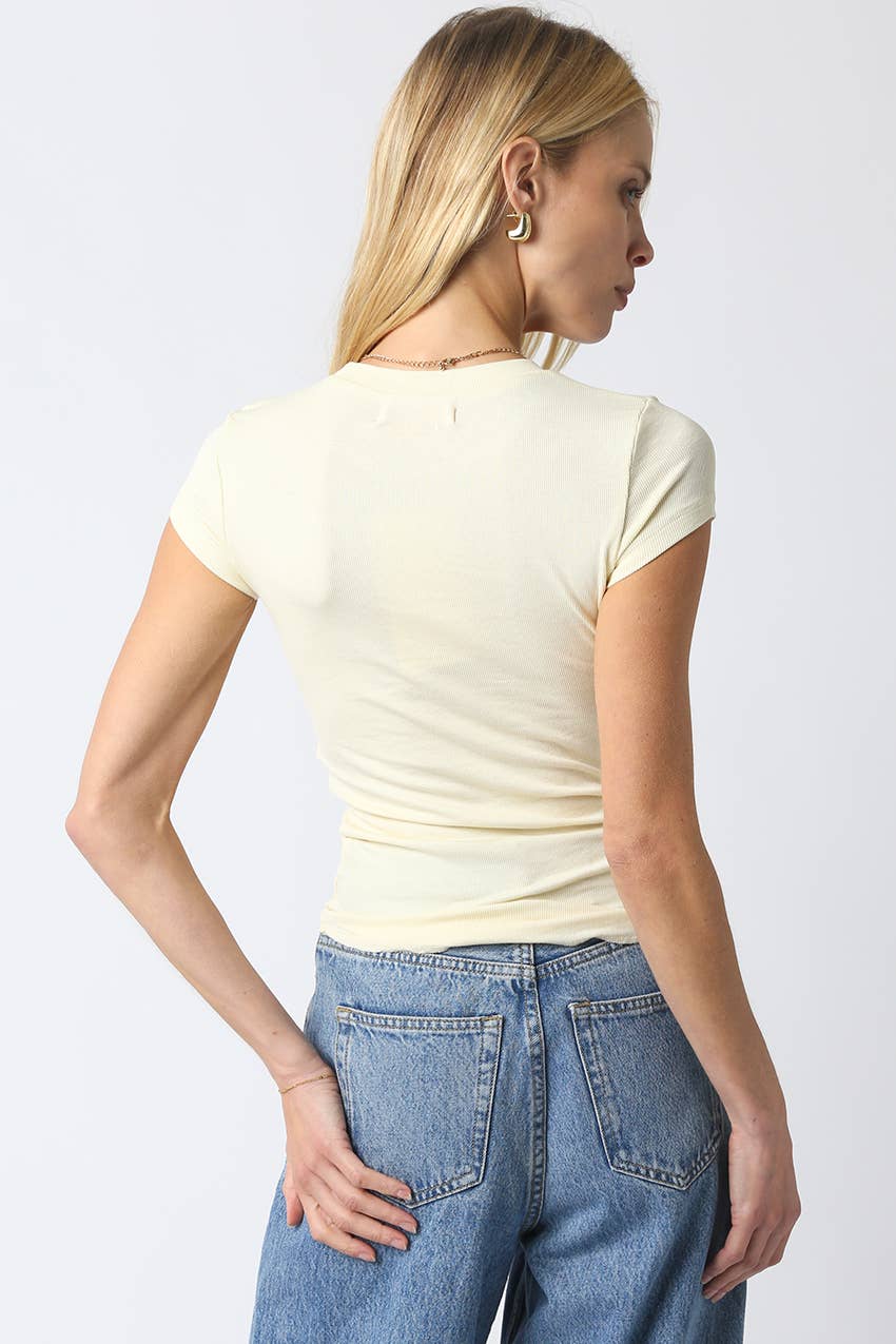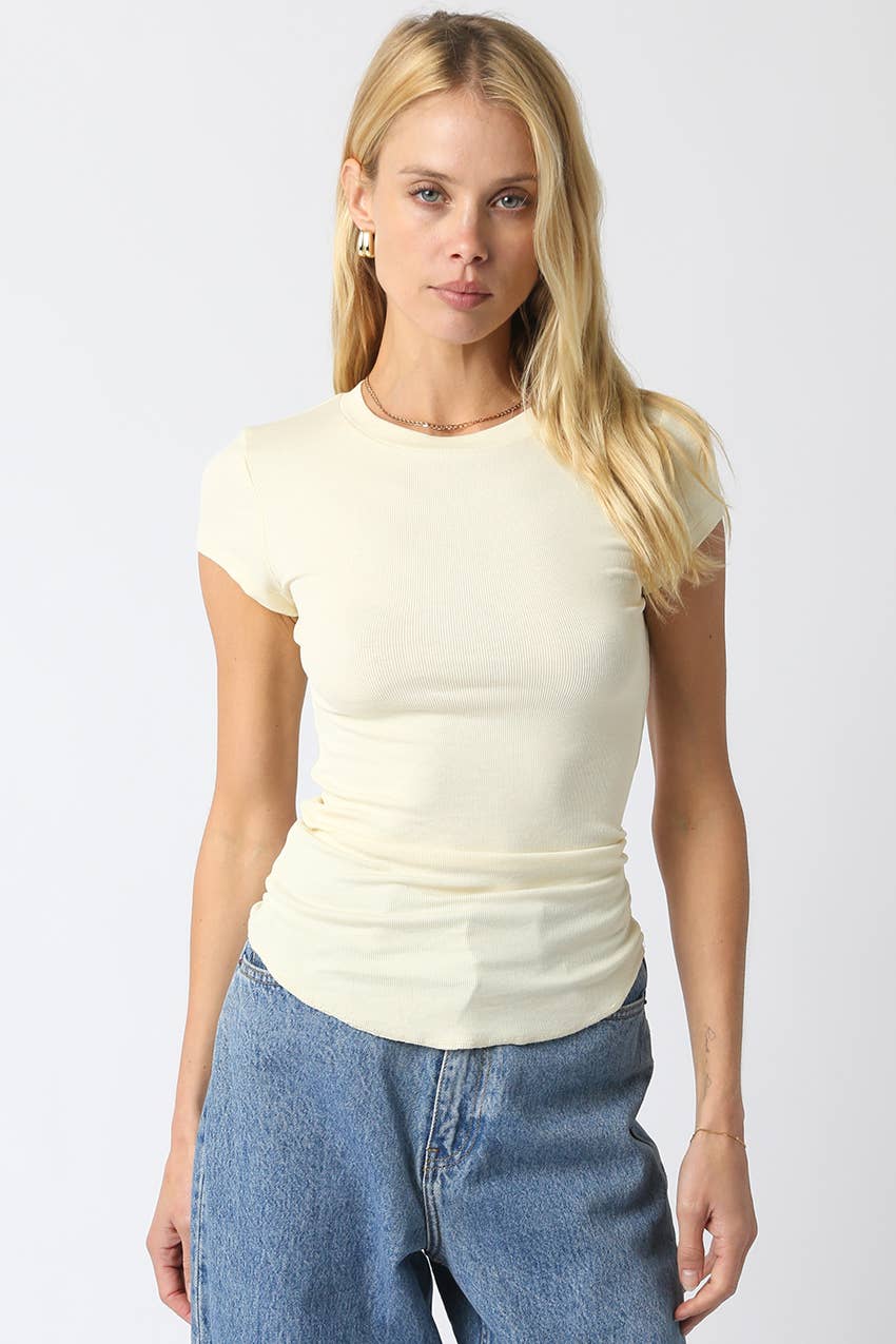 The Ribbed Cap Sleeve Baby Tee in Cream