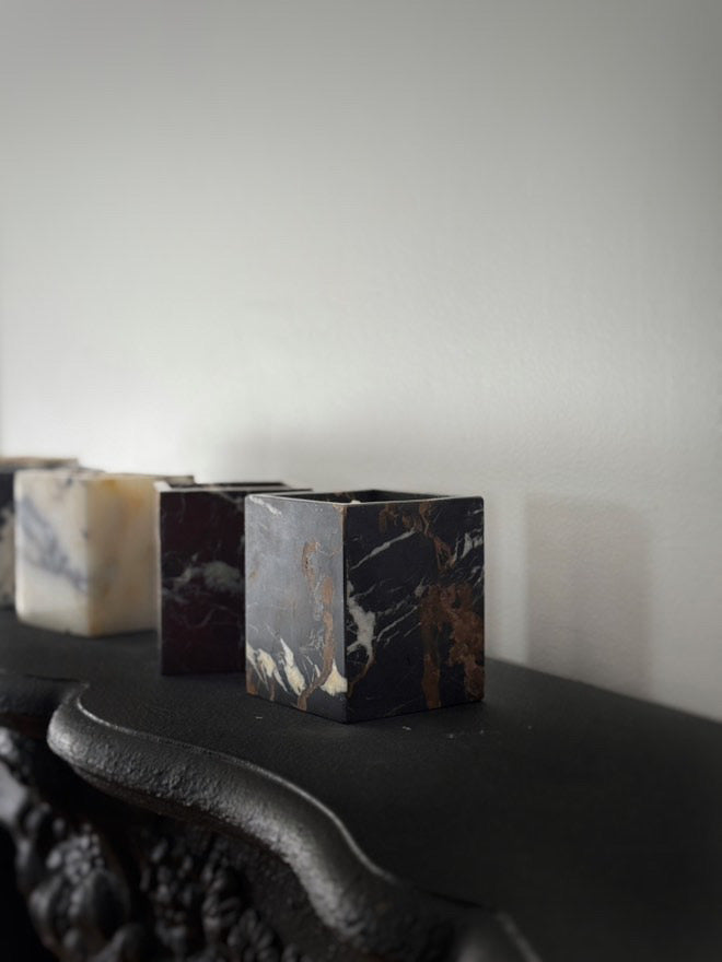 This stunning 13 oz. 100% marble vessel takes "reusing your candle" to the next level. This is just as beautiful after your candle is done as it is while it burns. It only gets more beautiful as the flame lights up the whole vessel! This statement piece is unique and eye-catching but mostly it is very memorable!